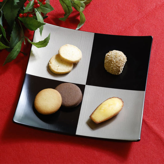 越前 7.5弥生皿 黒ハケ目市松 銀