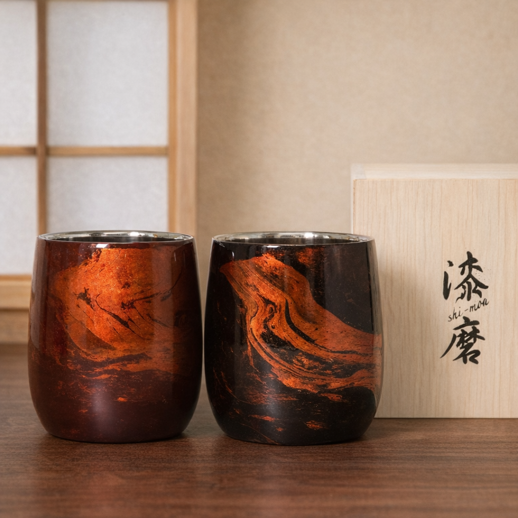 石川県の山中漆器の伝統塗装技術と、新潟県燕三条の世界が認める研磨技術が融合して生まれた、至高のカップ「漆磨カップ 白檀(びゃくだん) ダルマ」。