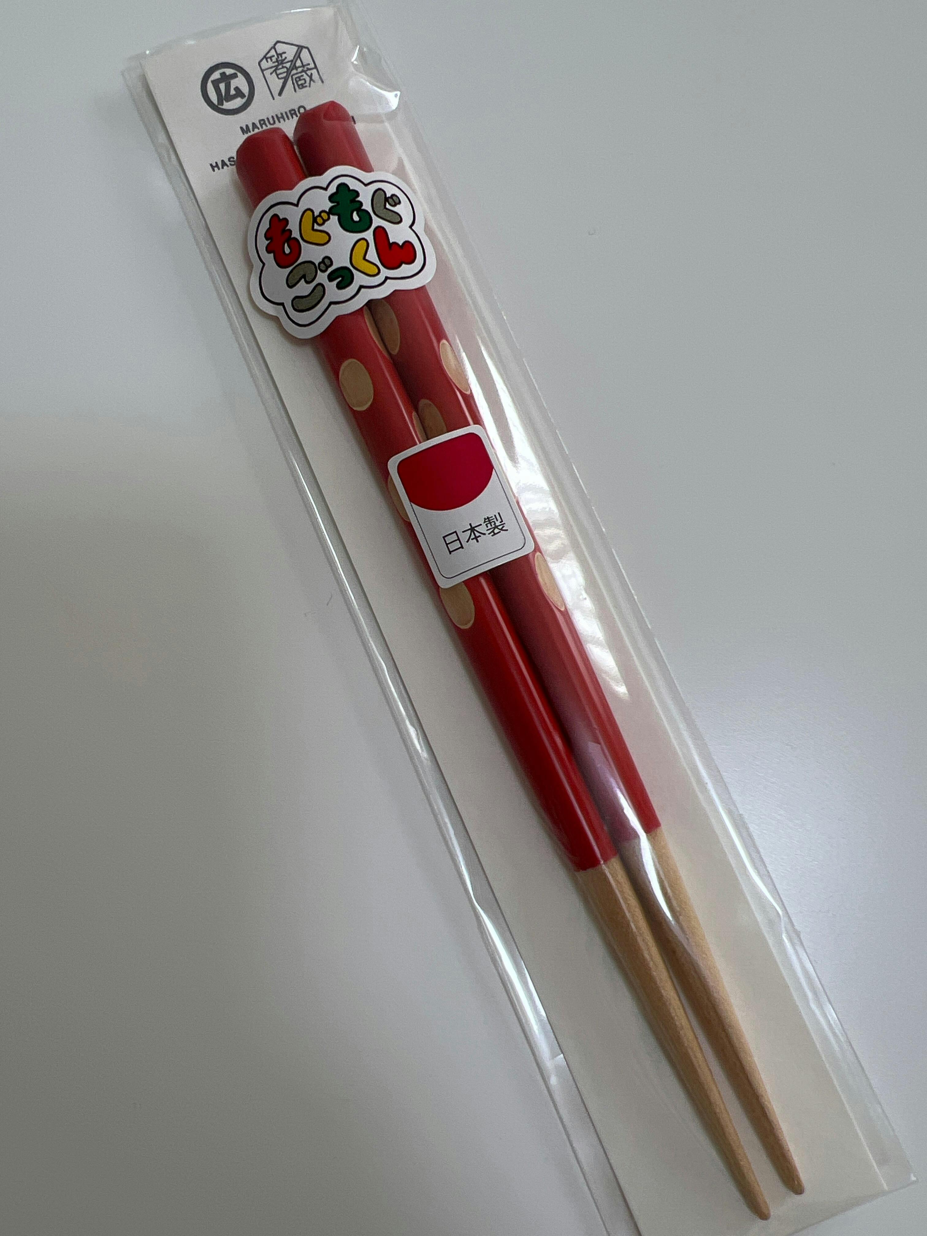 くぼみのある三角形の子供箸。指を置く位置が分かりやすく、正しい箸使いを自然と身につけられるお箸です。