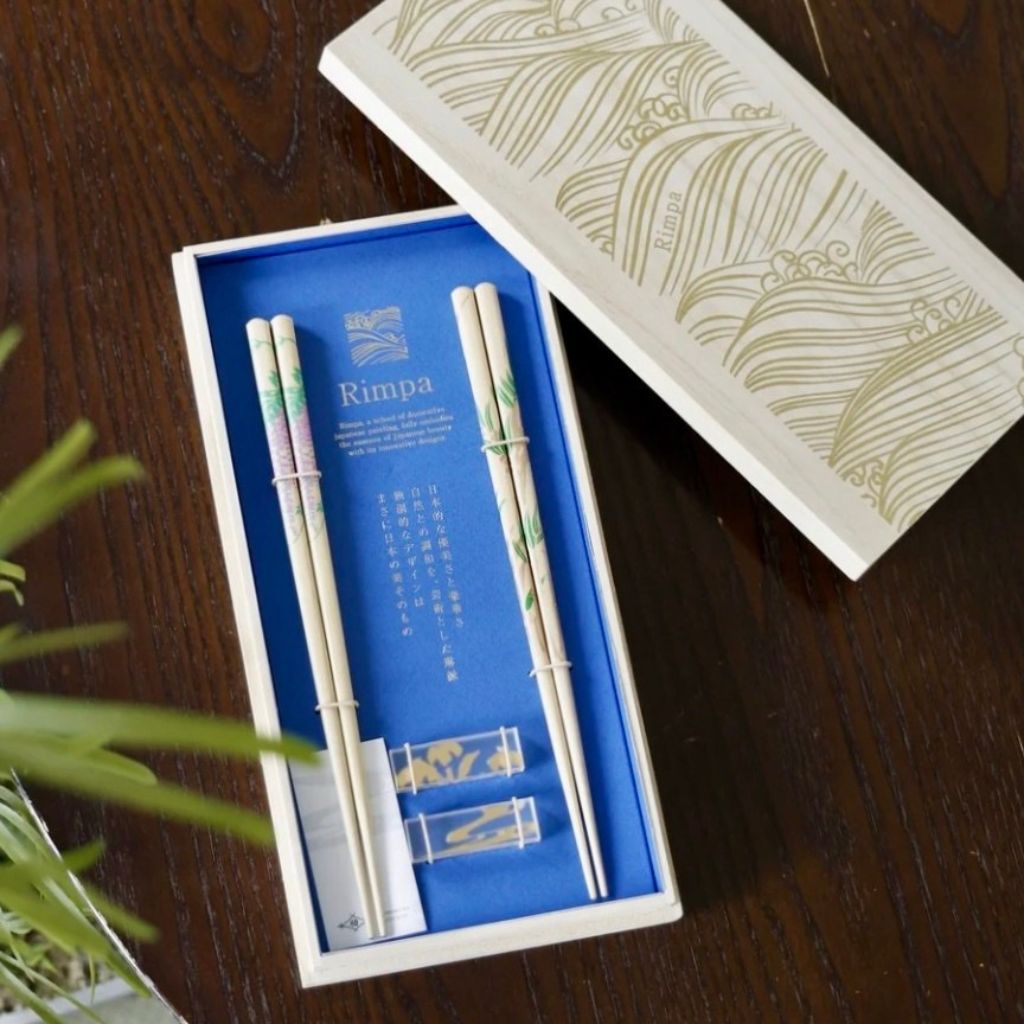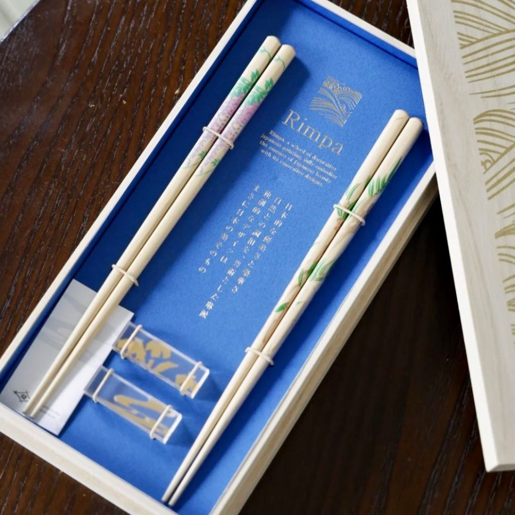 400年の歴史を誇る「琳派」の世界観を、現代の色使いで表現した箸置き付きの夫婦箸。