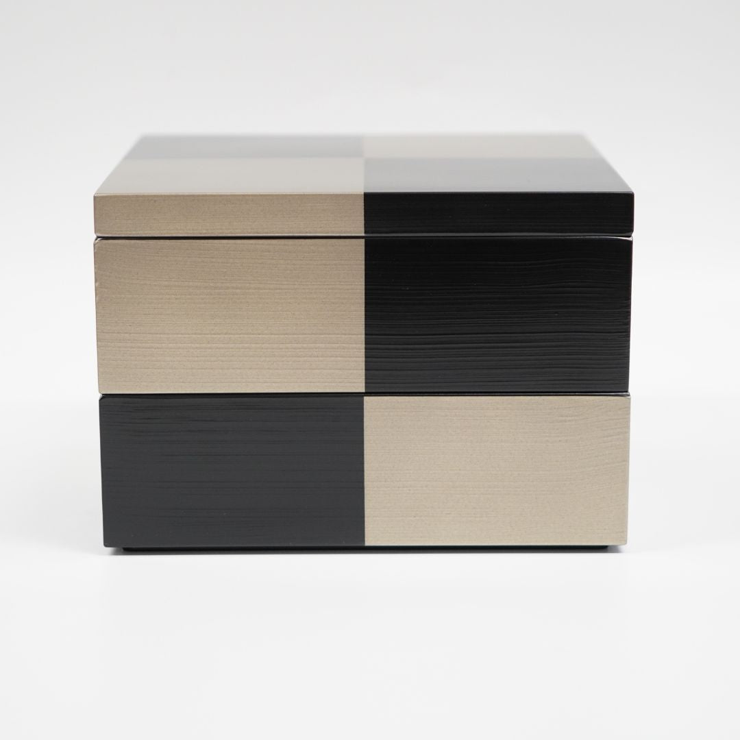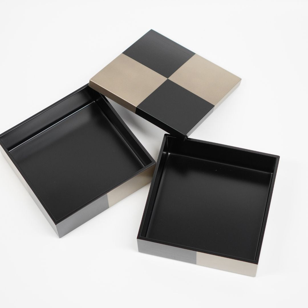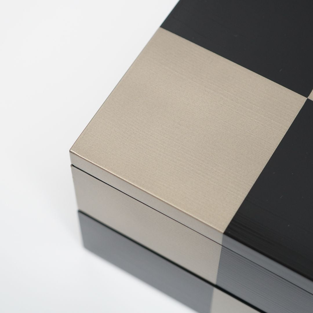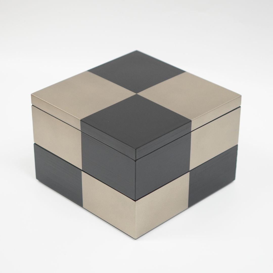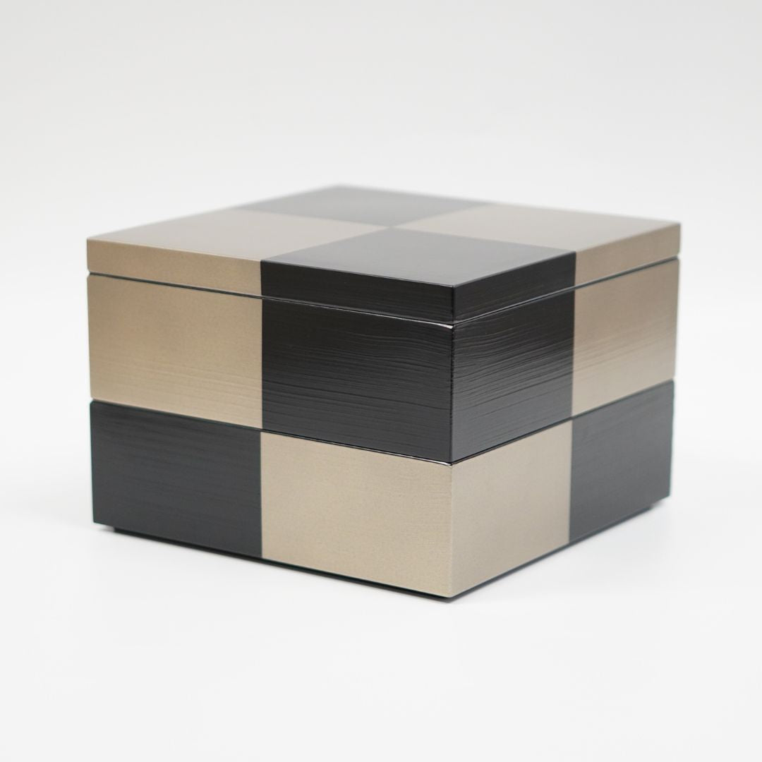 高翆だけのオリジナルデザイン「黒ハケ目 市松模様」の二段重。