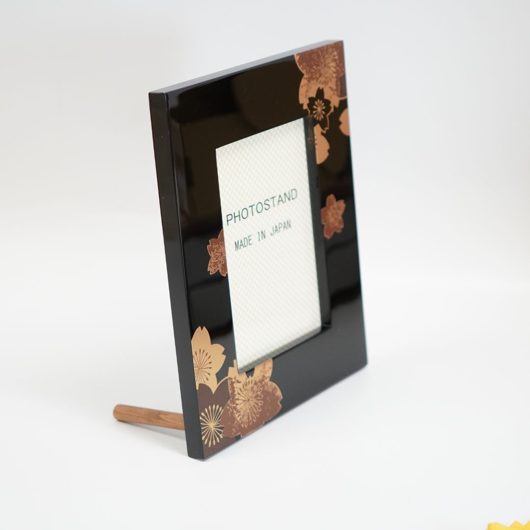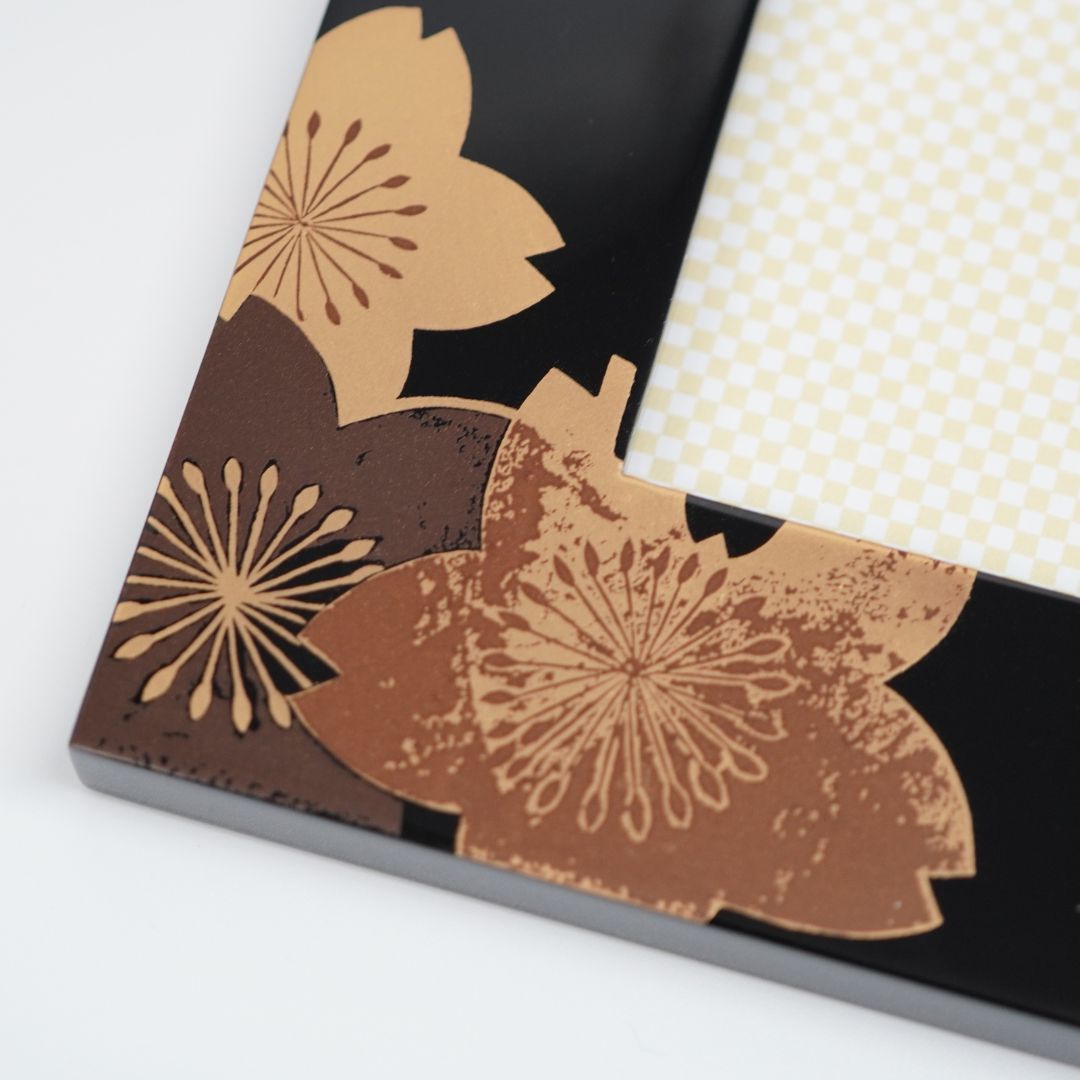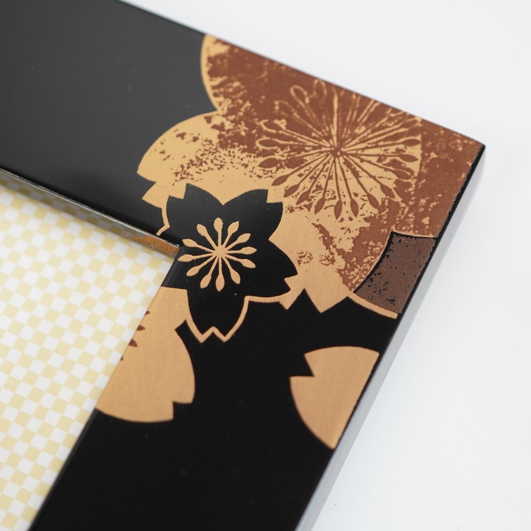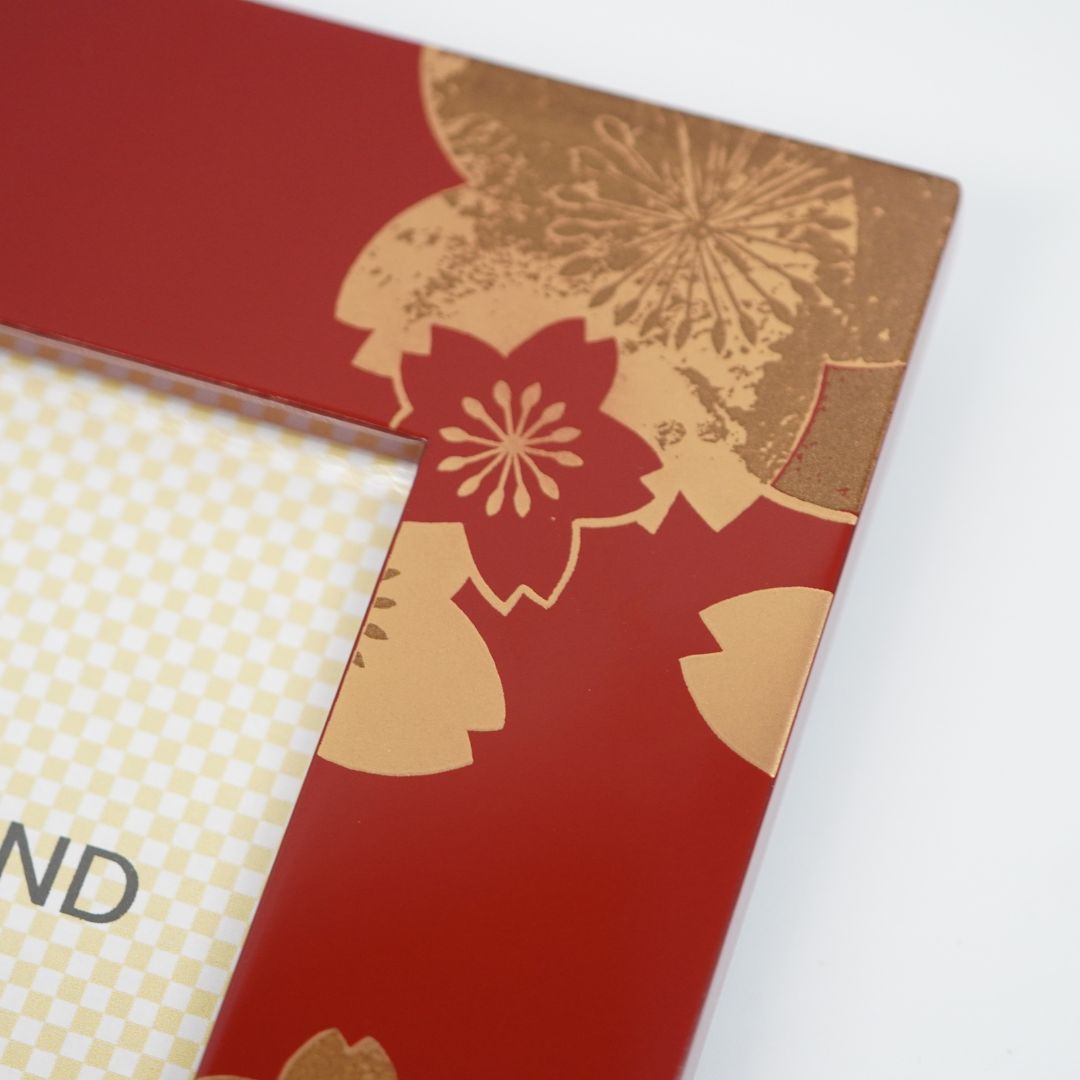金箔がきらめく桜模様が美しい、会津塗のフォトフレーム。