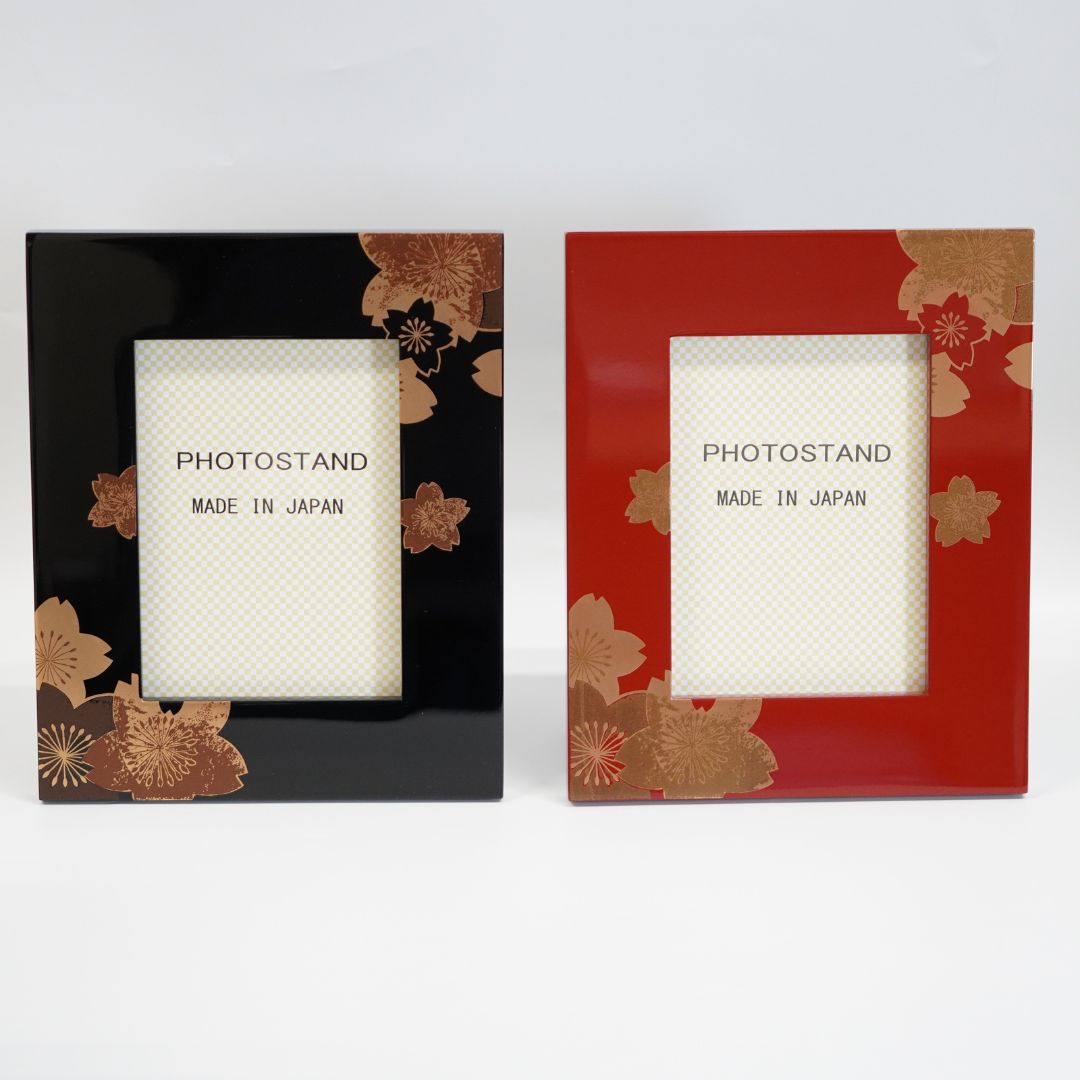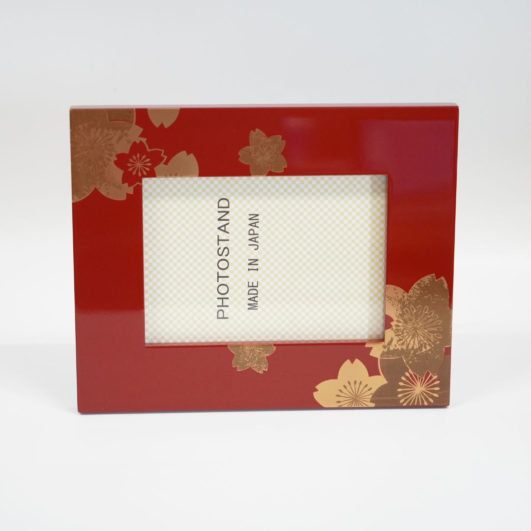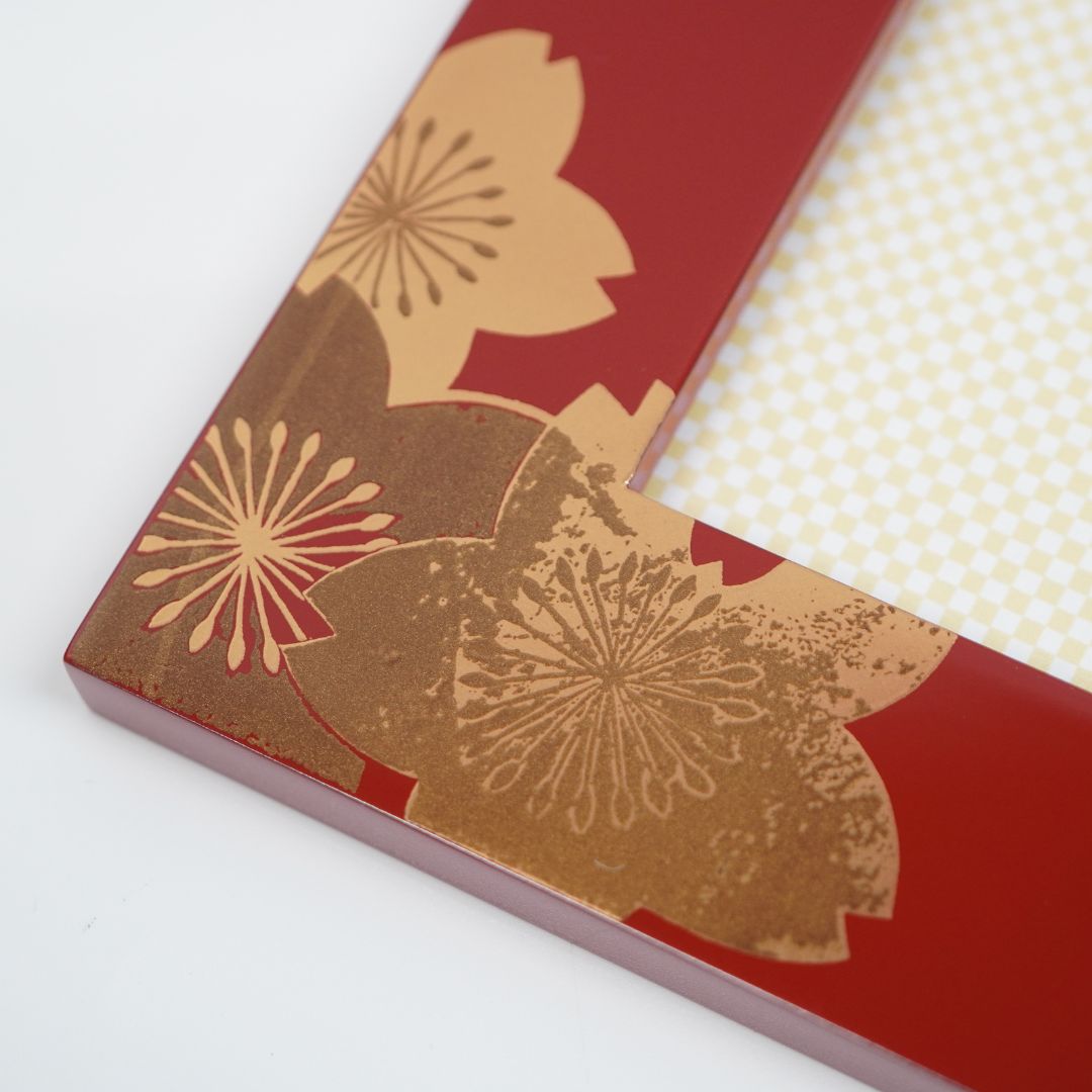 金箔がきらめく桜模様が美しい、会津塗のフォトフレーム。