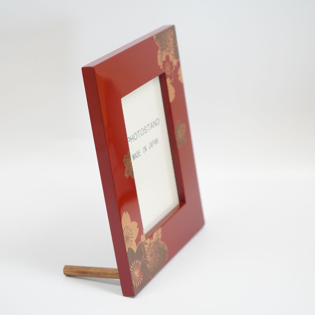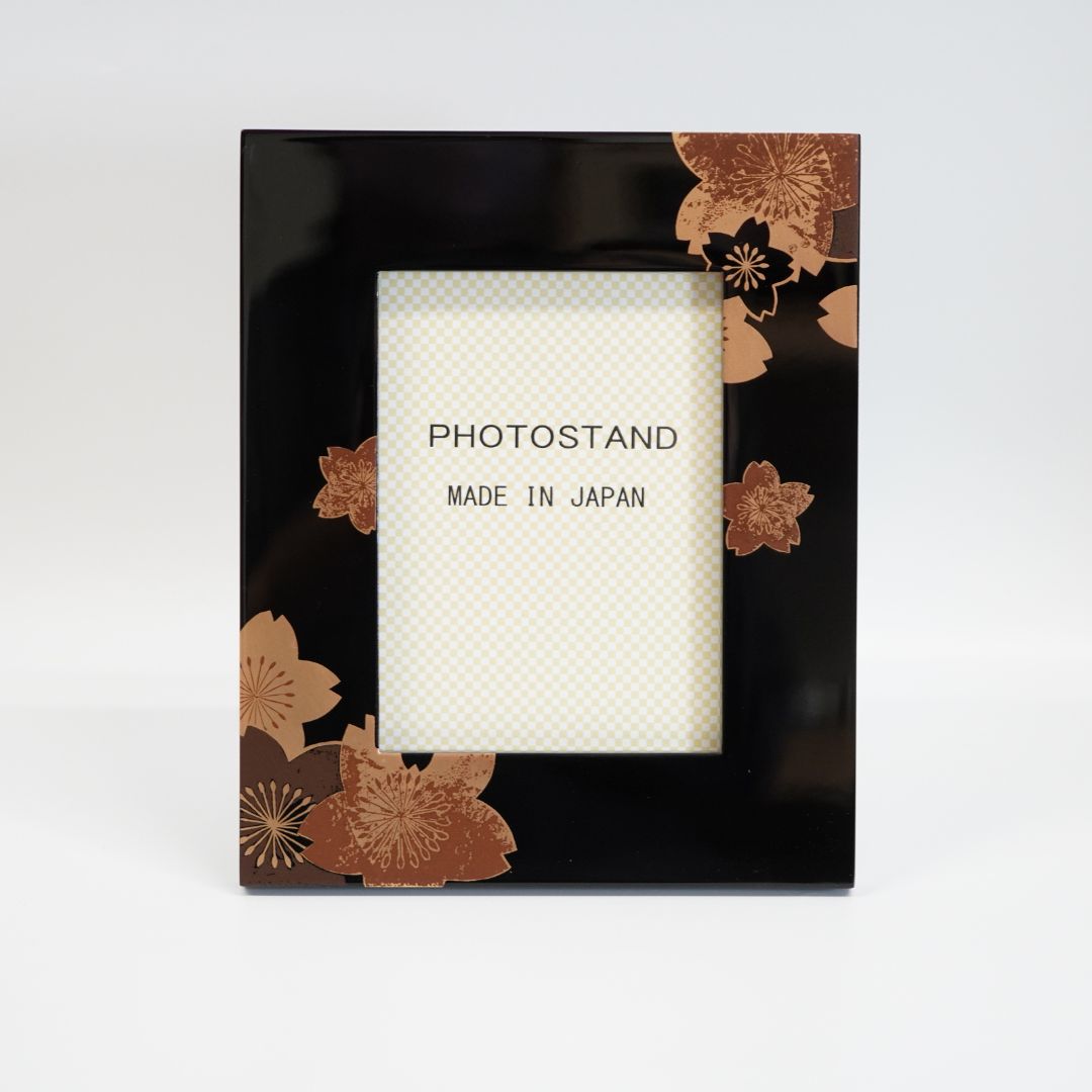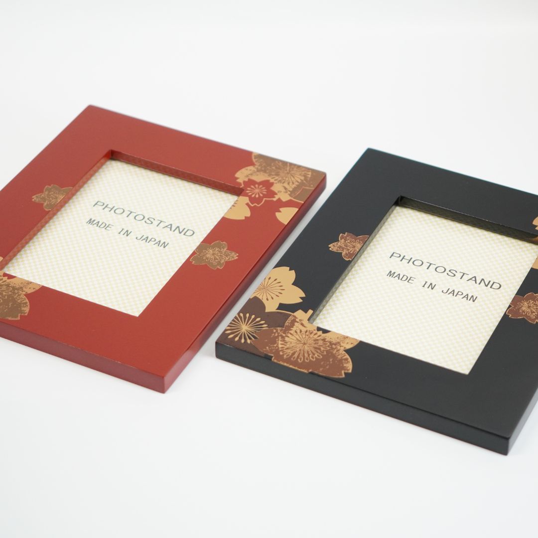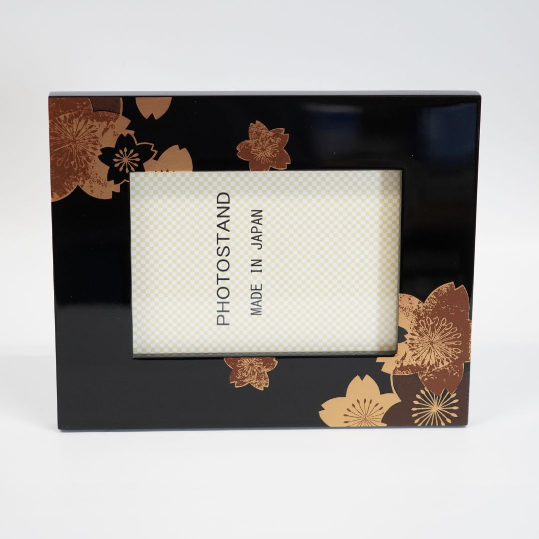 金箔がきらめく桜模様が美しい、会津塗のフォトフレーム。