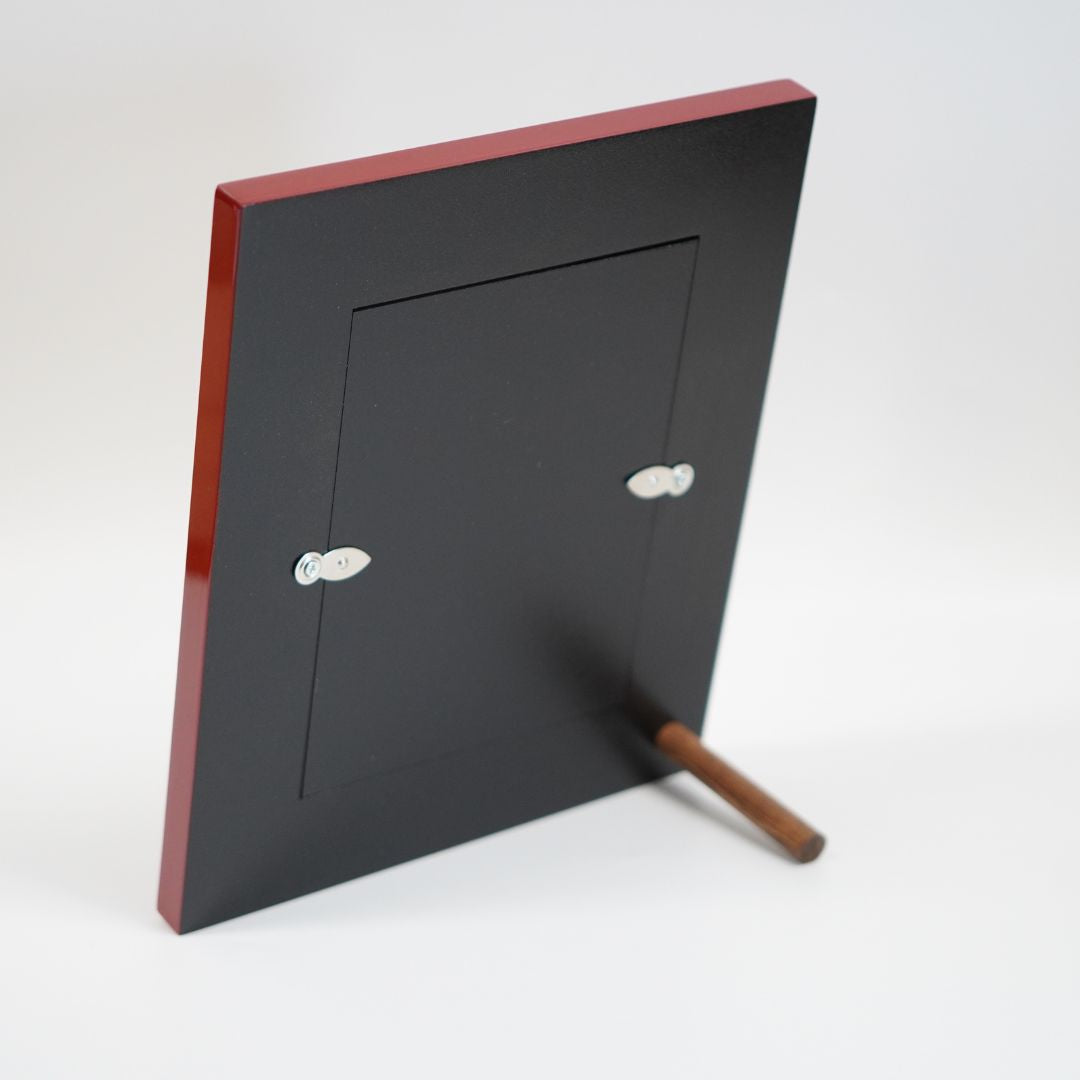 福島県の伝統工芸「会津塗」の技で仕上げられた木製フレームは、職人の丁寧な手仕事による温かみが感じられる一品。