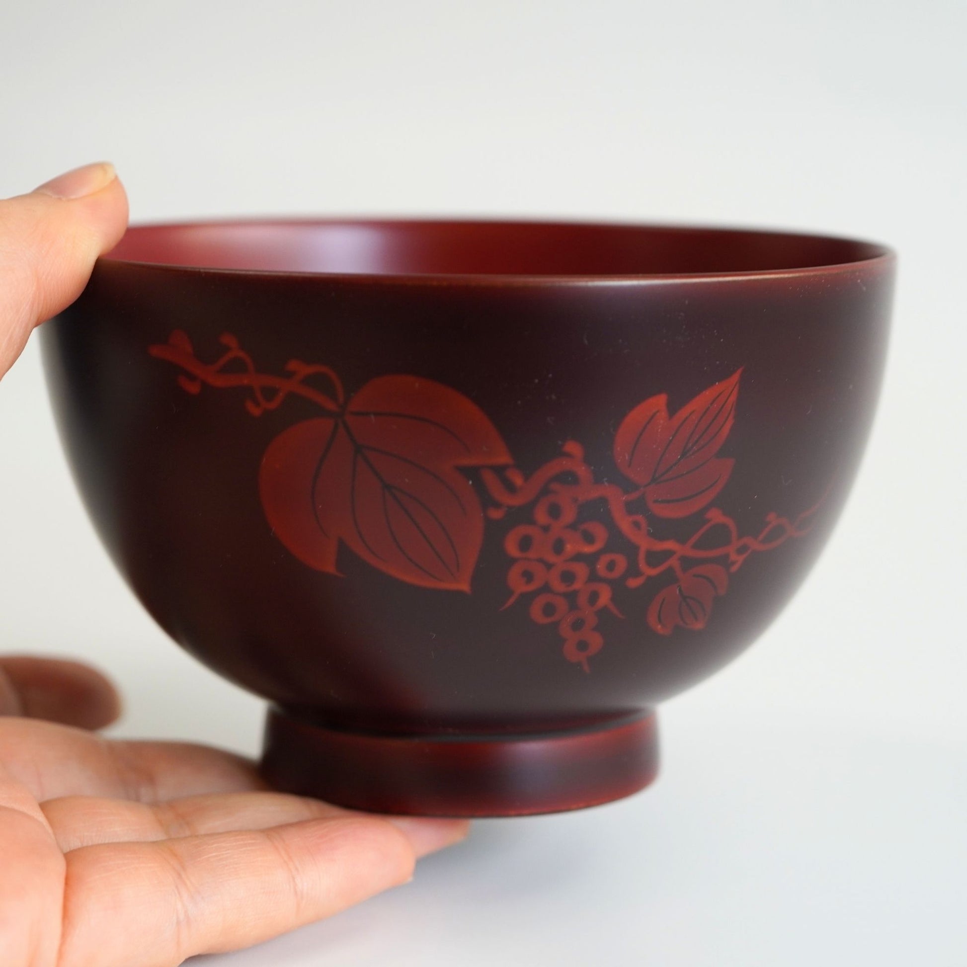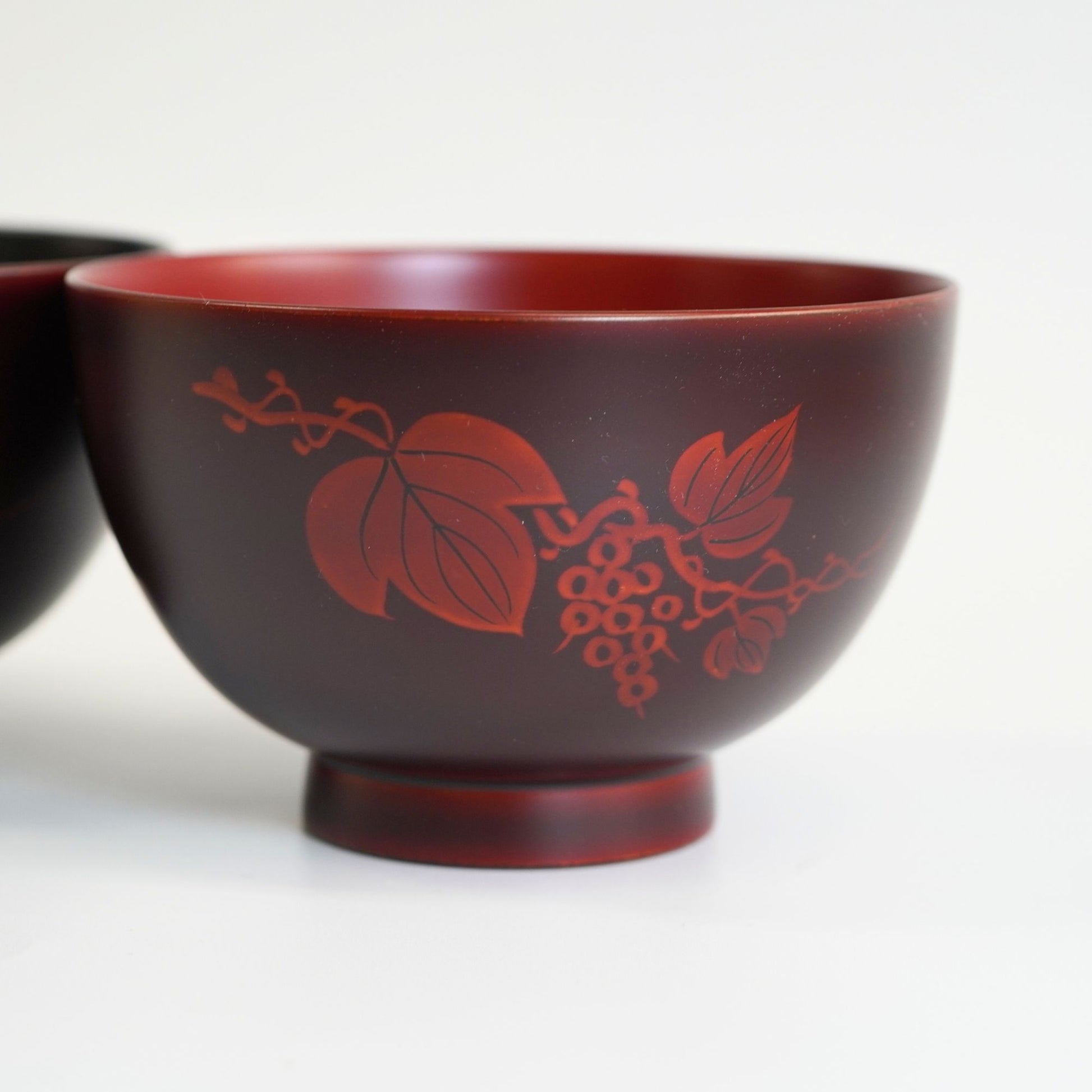 白檀塗の深みと葡萄文様が織りなす、気品ある夫婦椀。