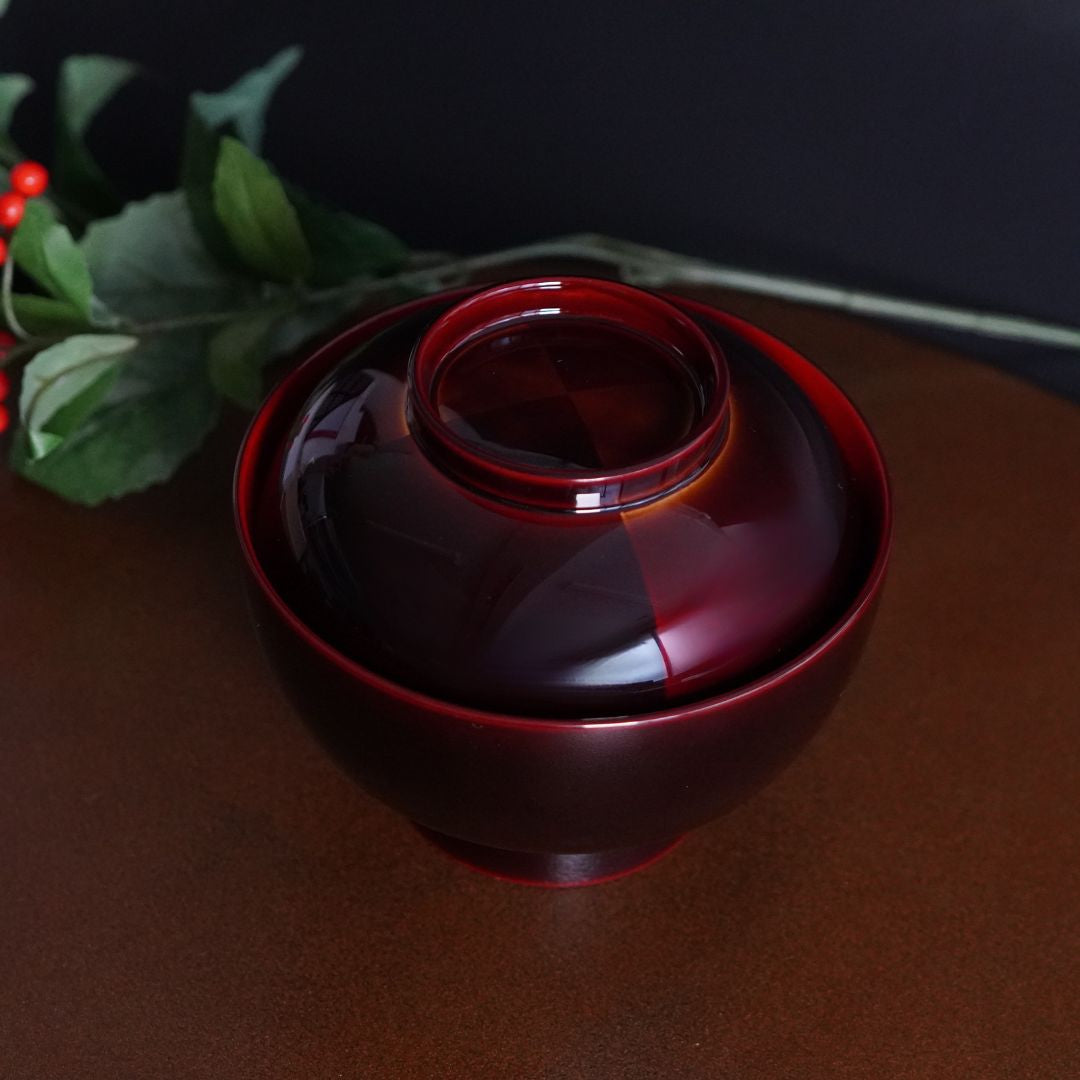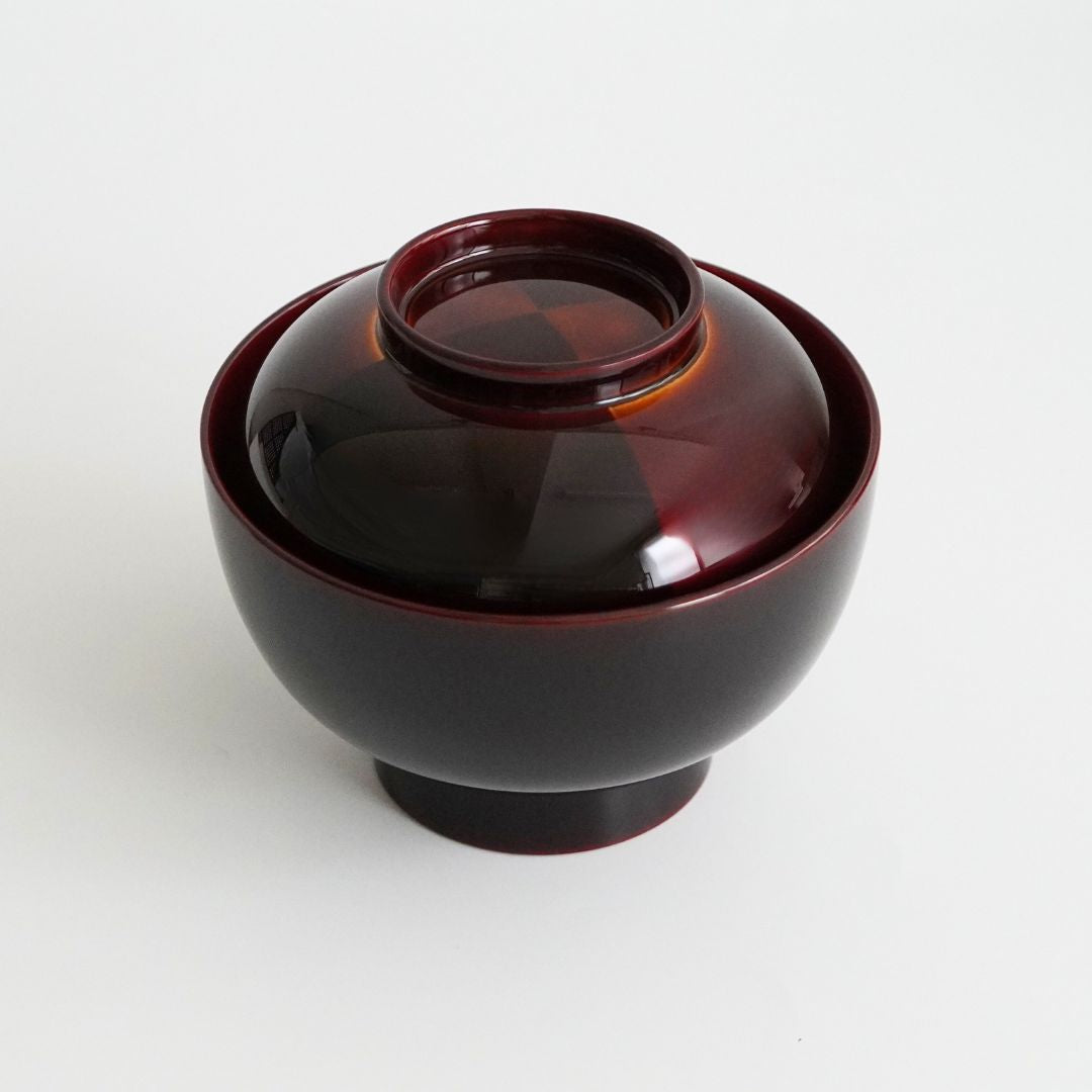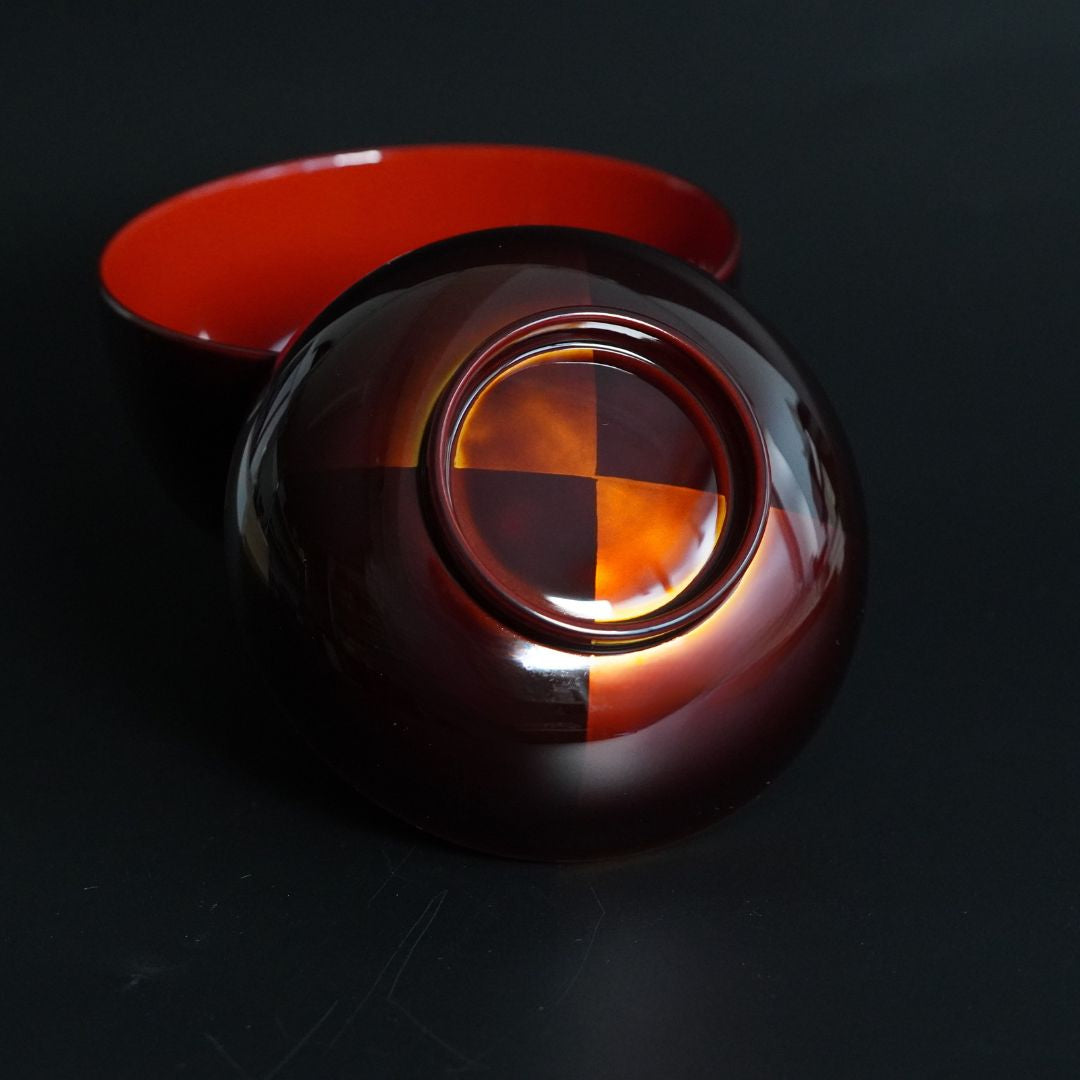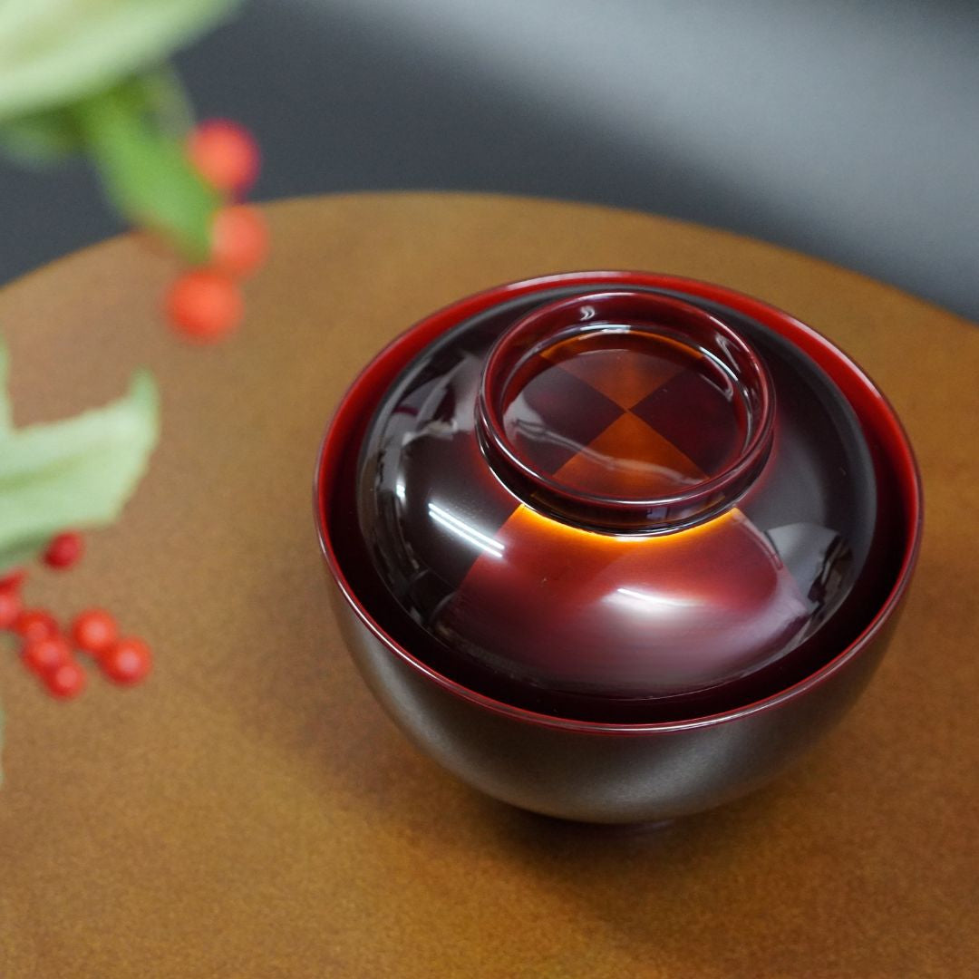 日本の伝統美を食卓に映す、越前漆器「市松白檀 雑煮椀」。